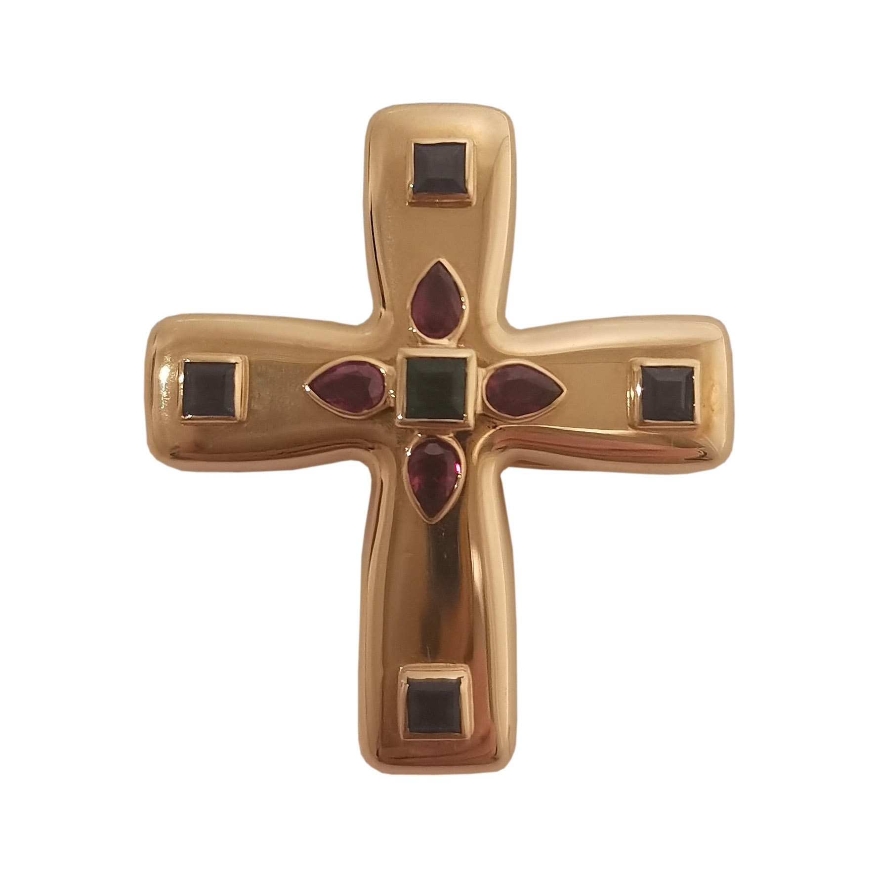 MULTI-GEM BYZANTINE CROSS PENDANT-BROOCH