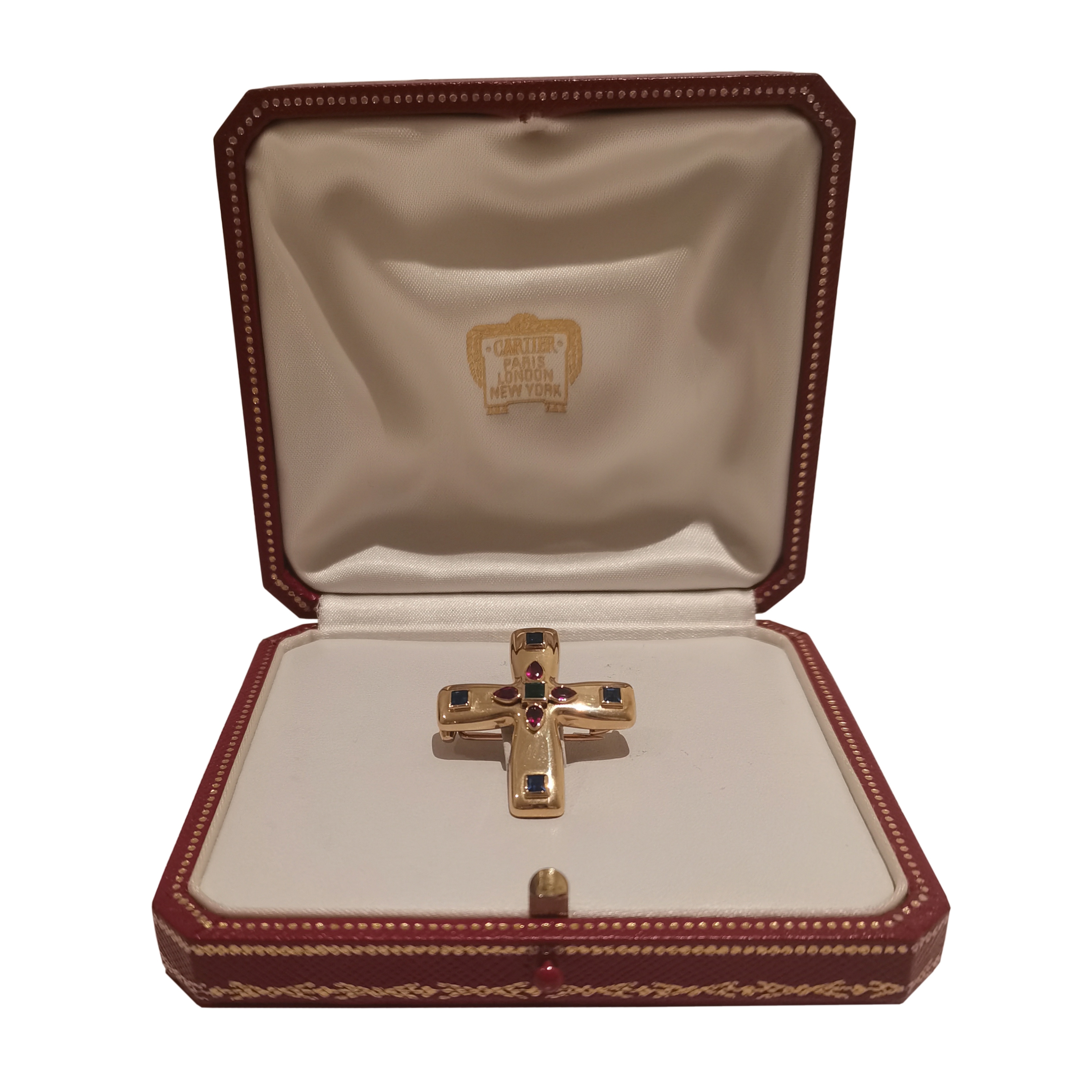 CARTIER MULTI-GEM BYZANTINE CROSS PENDANT-BROOCH