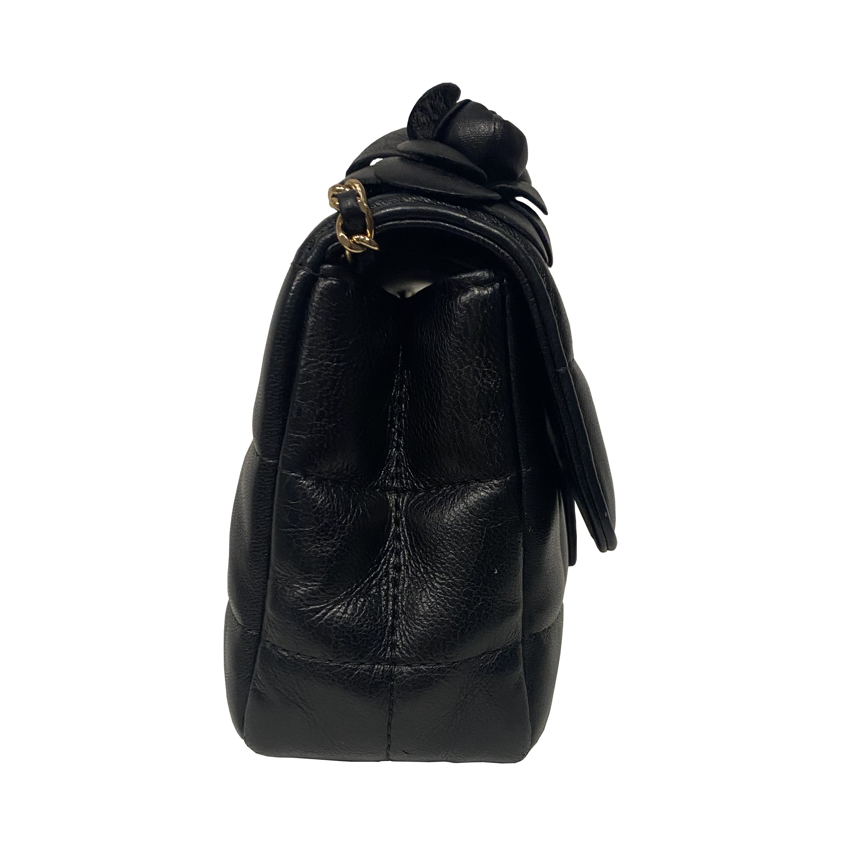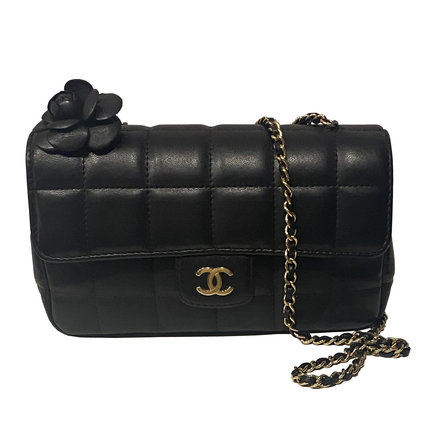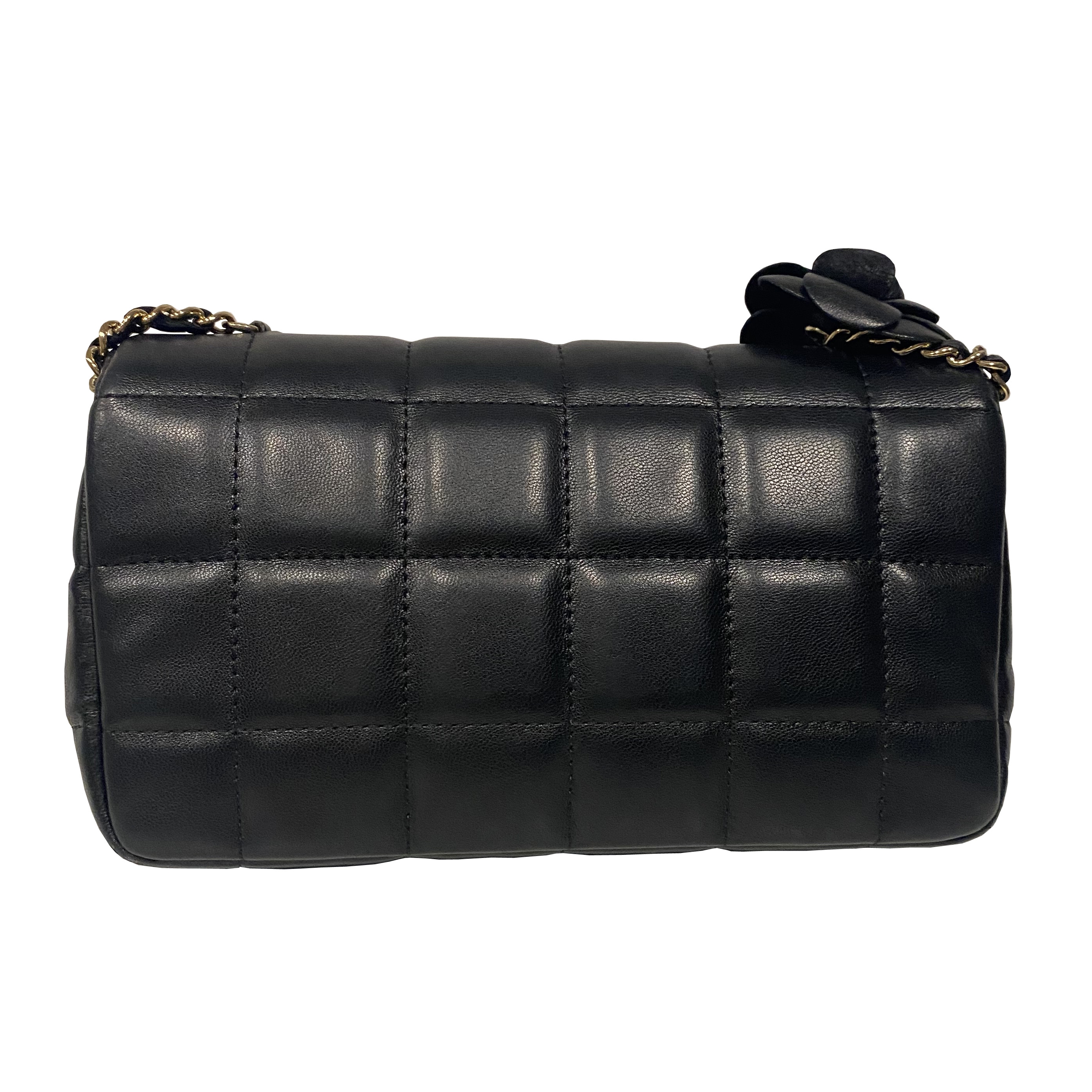 CHANEL MINI TIMELESS CAMELIA BLACK QUILTED LAMBSKIN SHOULDER BAG