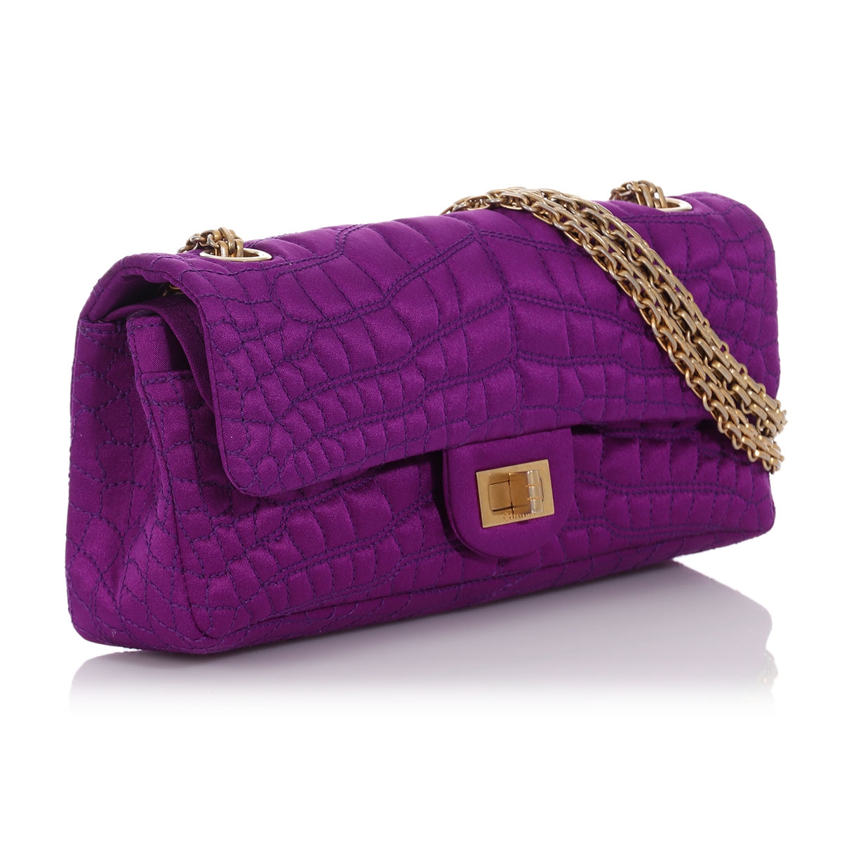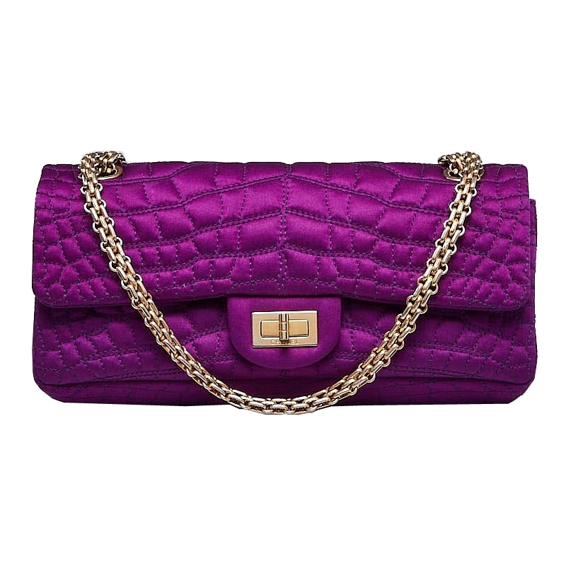 Luxury Handbags | CHANEL Purple Quilted Croc Satin Reissue East/West Flap Bag