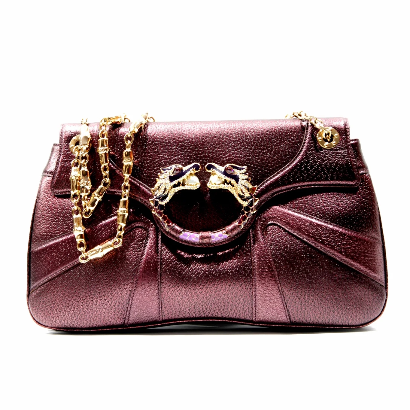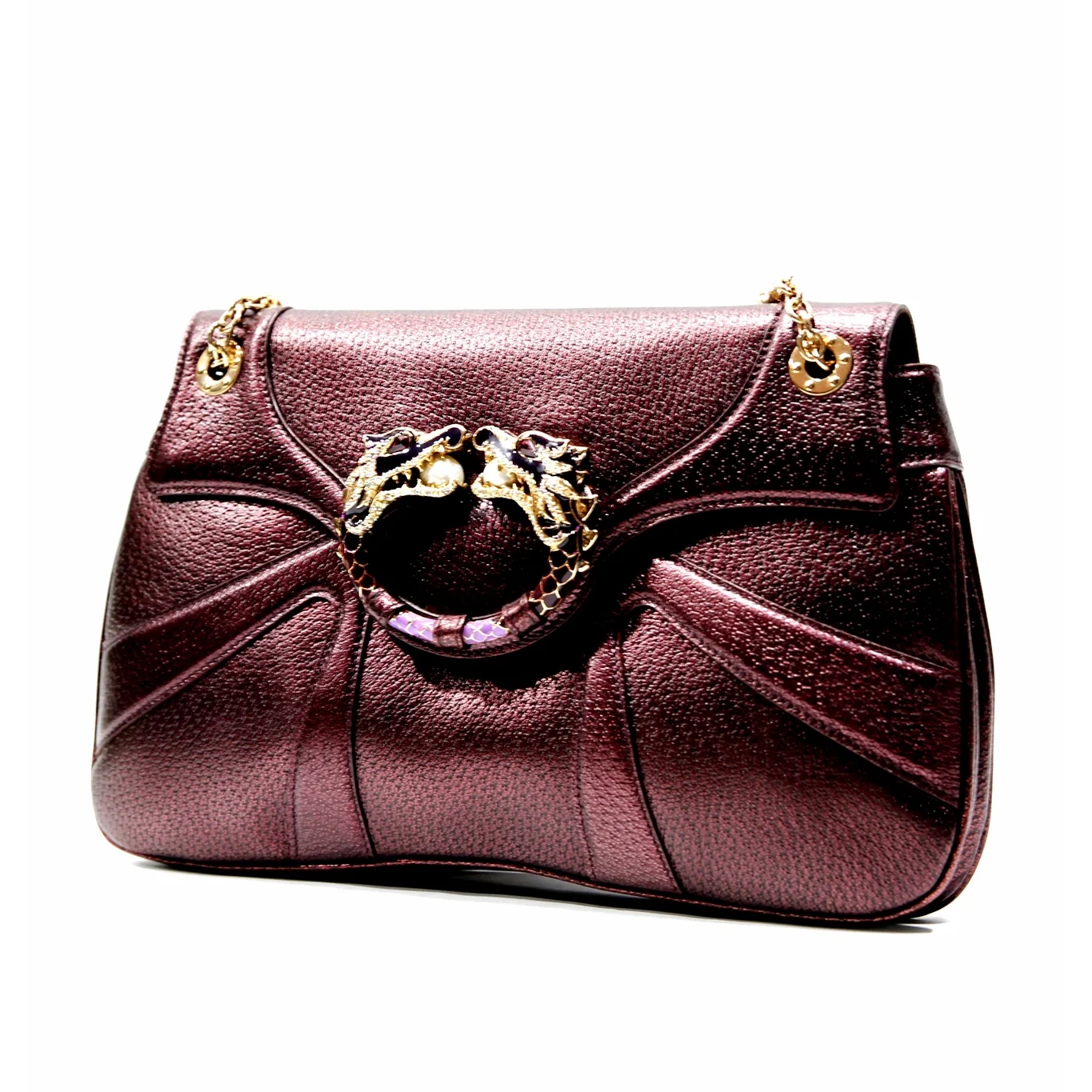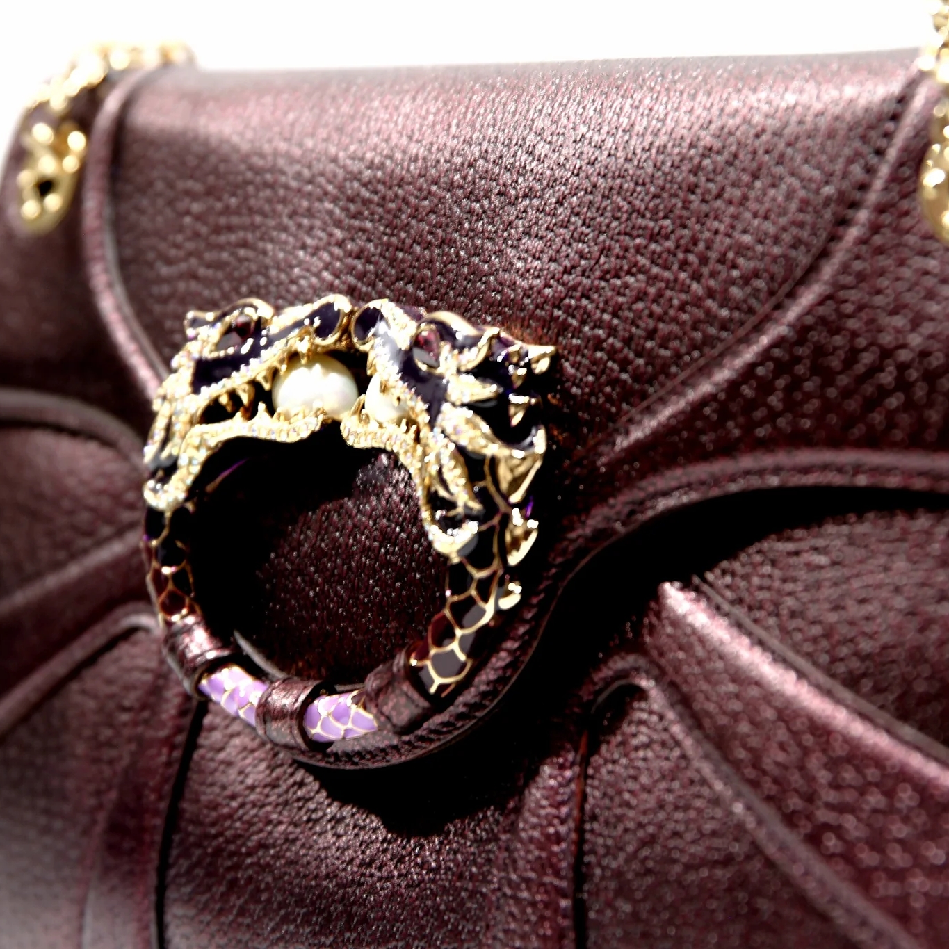 Metallic purple leather with striking pearl and crystal encrusted dragons